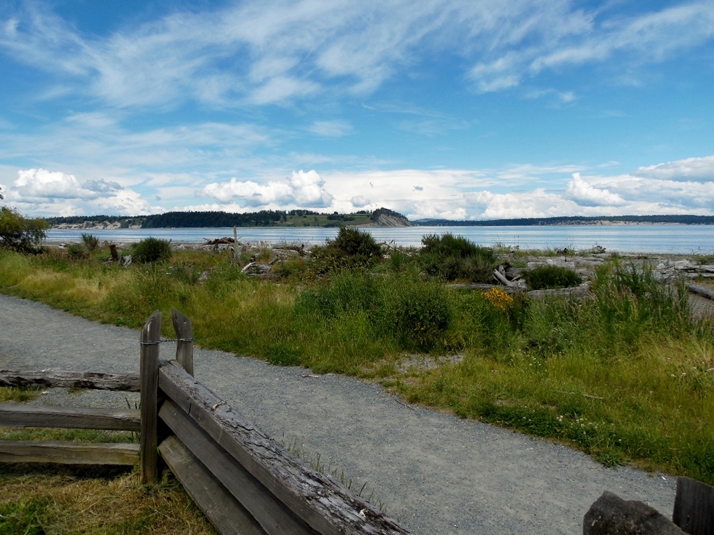 Island-View-Beach….. der Name sagt es. Wir können uns an den umliegenden Inseln und der naturüberlassenen Beach nicht satt sehen….Wildblumen, Schwemmholz, Schlick und Tang. Hier bleiben wir mindestens……..Tage. Nach 2 Tagen geben wir auf. Jeder zweite Gassigeher kommt mit denselben hundert Fragen: „You shipped it over? What year is it? usw., usw. …und das schon vor dem Frühstück. Was lernen wir daraus….nicht immer in der ersten Reihe stehen.