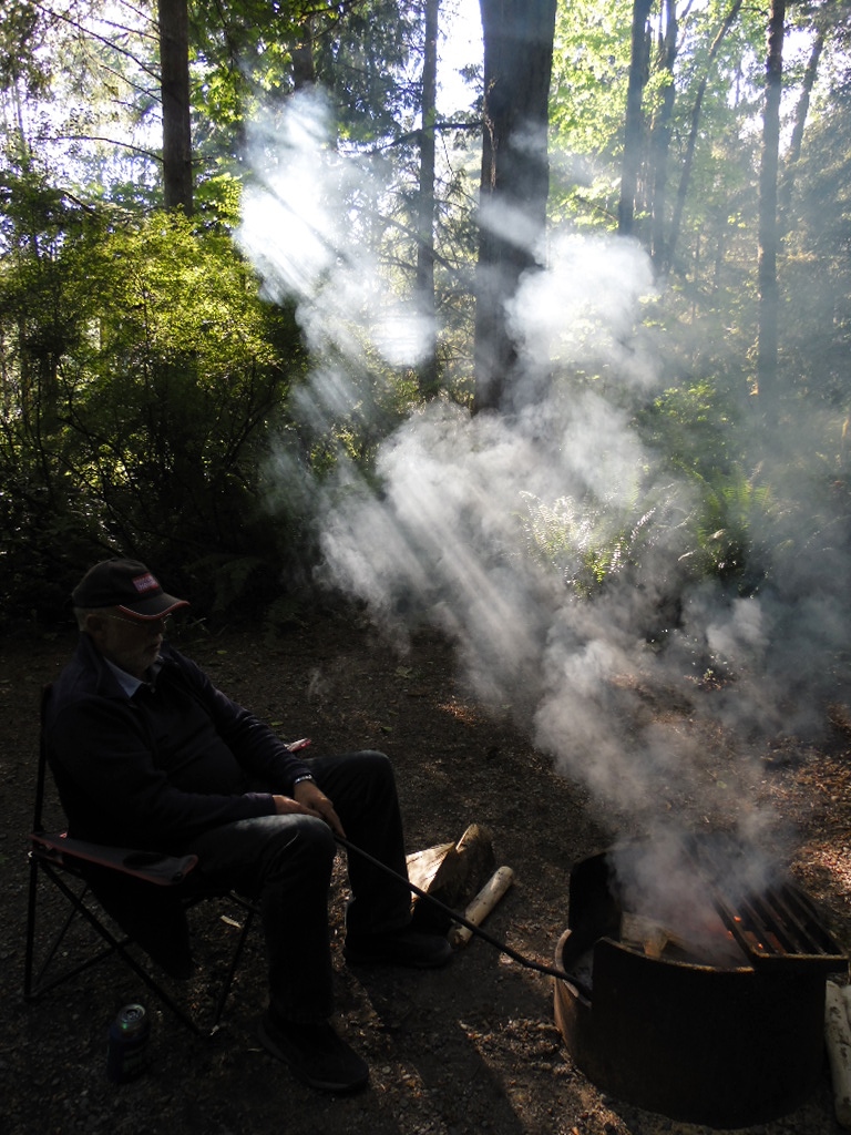 Es ist langes Wochenende, Vatertag. Schon am Freitagnachmittag wird es eng mit Stellplätzen. Wir sind nicht weit von Vancouver-Islands Haupstadt Victoria und die „Haupstädter“ haben für das Wochenende vorgebucht. Für eine Nacht können wir an der French-Beach stehen. Wir stehen mitten im Wald, alle 30m qualmt ein Grillfeuer. Die Moskitos haben keine Chance.