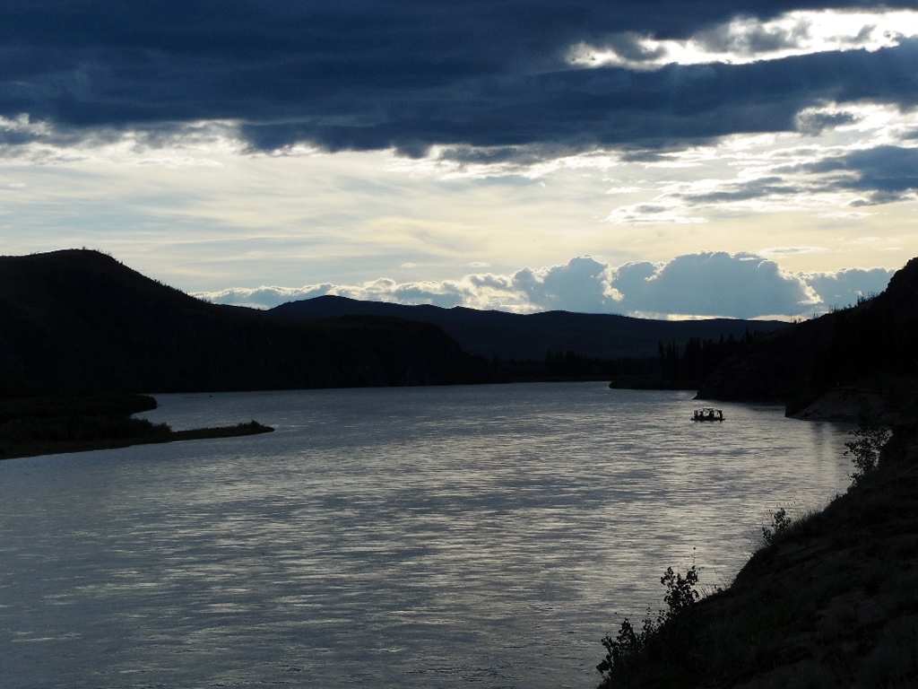 Der Verkehr auf dem Highway wird immer weniger, meist kommen uns die Fahrzeuge aus dem Norden entgegen. Bären und Elche lassen uns im Stich…. wir suchen unsere Fotomotiver am Yukon-River. Eine Barge bringt Minenarbeiter auf die andere Seite des Rivers. Mit dem Dinghy fährt ein ehemaliger Deutscher zum Fischen, er stammt aus Habichtswald/Ehlen. Am Abend kommt der Hammer…. nein , ein Floß. Wir rufen „AHOI!“ „Aho!i“ kommt prompt zurück. Wir pokern weiter “Wo kommt Ihr her?“ „Aus der Schweiz und aus Deutschland.“ Sie lassen sich mit der Strömung bis Dawson City treiben. Sie werden noch ein paar Tage unterwegs sein.