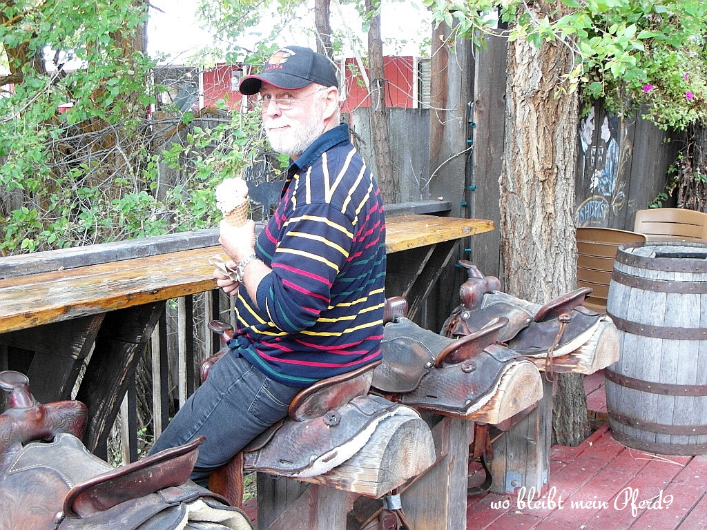 Wir fahren durch Winthrop… diesmal ´ne echte Westernstadt. Die Gebäude von 1900 sind alle im damaligen Stil erhalten und toll restauriert. Für ein Eis „satteln wir down“ es fehlen nur noch die Pferde.