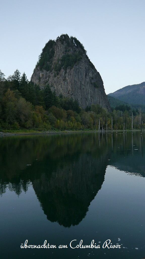 Unser Knöllchen für heute sollen wir doch noch bekommen. Am Beacon-Rock-State-Park angekommen… für 10 US$ die Nacht bleiben wir. Zurück vom walk ….. ein Knöllchen über 135 US$ um den Türgriff gewickelt. Frau Ranger ist noch vor Ort. „Warum, weshalb, wofür?“ Wir würden auf einem Platz für dayguests stehen. Weil wir Frau Ranger angesprochen haben, brauchen wir nur noch 12 US$ nachbezahlen und moven 30m weiter. Bis auf die Regentropfen, die in der Nacht auf das Dach prasseln … eine ruhige Nacht.
