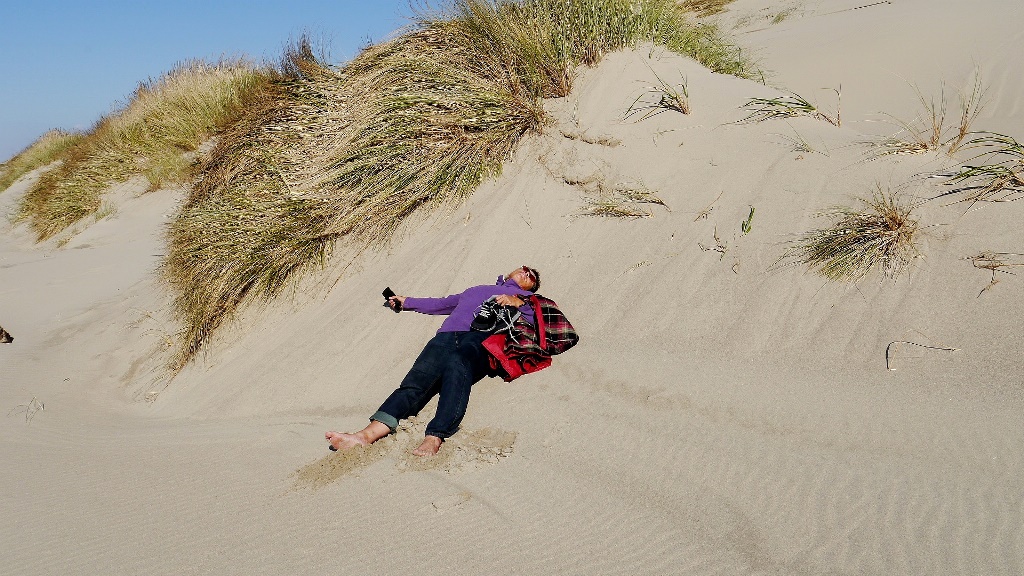 Muskelkater… wovon das denn? Vom Dünenklettern. Wir sind an Oregons Pacificseite …. Honeyman-Beach bei Dunes-Island?.