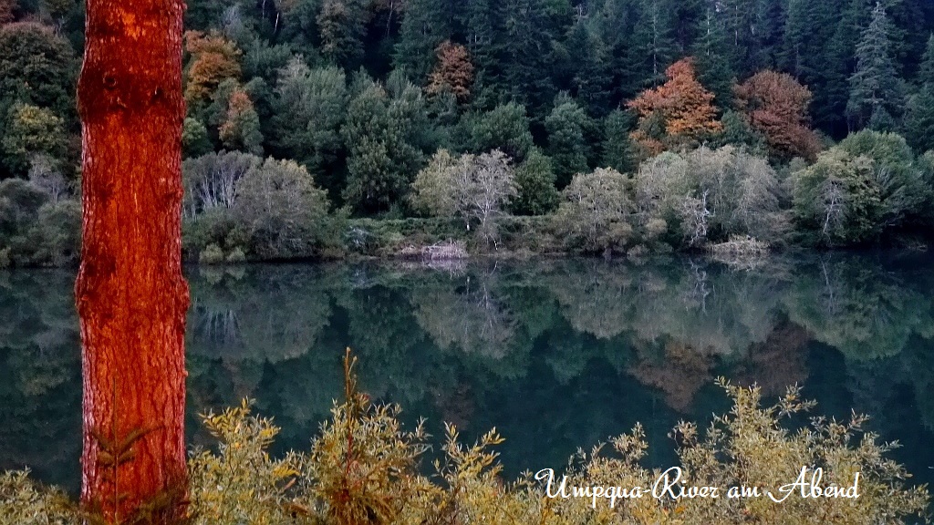 Auch der nächste Abschnitt , Umpqua-River Scenic-Byway ist wieder sehr schön. Auf der 138 geht es gen Westen … wir wollen mal wieder ans Meer. In Sutherlin spricht uns Dirk, der Ex-Berliner an. Er kennt sich aus …. mit 911ern und Unimogs. Mehr als 90 Fahrzeuge hat er von Deutschland importiert und hier in den Staaten verkauft. Wir haben mit Dirk eine sehr nette, lange Unterhaltung auf dem Parkplatz…. ignorieren derweil mindestens 10 weitere „Pummel-Neugierige“. Es wird spät… gerade noch vor Dunkelheit finden wir einen ruhigen Platz am Umpqua-River.