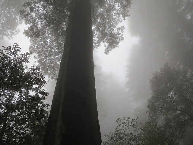 In den Bergen wird es dann sehr nebelig… je höher wir fahren umso dichter. Am Lady-Bird-Johnson-Grove laufen wir den Trail ab… im Nebel sehen die Redwood-Giganten noch gigantischer aus.