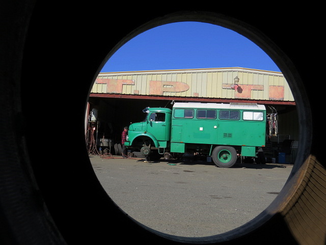 Punkt 14.00Uhr….die Schläuche werden geliefert. Zwei Schläuche erneuern, drei Reifen tauschen, es ist 16.00Uhr… wir sind „on the road again“.