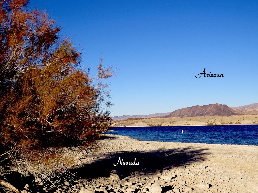 Unsere Route führt uns nach Arizona …. Historical Route 66. Vorher machen wir einen kleinen Abstecher zum Lake Mohave. Eigentlich ist der Lake Mohave der Colorado-River, gestaut zu beiden Seiten. Auch hier ist eine Bootsfahrt nicht mehr lustig, der Wasserpegel ist in den letzten Jahren stark zurückgegangen….hm. Das Stromproblem kann man sicherlich hier in der Wüste optimal mit Solar lösen…. aber das Wasserproblem? Wir bleiben eine Nacht am Lake Mohave, stehen noch in Nevada, schauen auf die andere Seite…. nach Arizona.