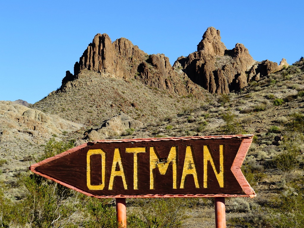 In Laughlin erreichen wir den Bundesstaat Arizona, fahren noch einmal zum Lake Mohave ….. schön gelegen im Colorado-Canyon. Im Tourist-Office von Bullhead-City decken wir uns ausreichend mit Prospekten ein. „Where are you going next?“ „ Route 66 till Flagstaff“. „Wow, it´s getting very cold and it´s snowing in Flagstaff at the weekend!“ Im Pummel checken wir noch einmal das Wetter per Internet. Tatsächlich bringt die arktische Kälte von Canada Schnee und Eis. In Flagstaff sollen es heute Nacht minus 9 Grad werden. Wir fahren nur bis Oatman ….. minus 1 Grad reichen uns.