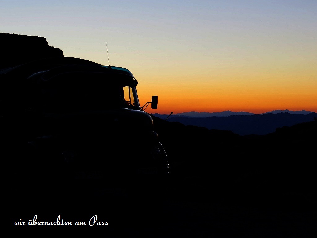 Wir trennen uns spät, fahren die Goldroad hinauf zum Stilgreaves-Pass…. Traumhafte Aussicht zum Sonnenuntergang. An der Zufahrt zu einer alten Mine finden wir Schutz vor dem eiskalten Wind.