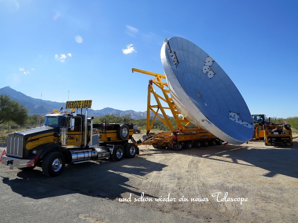 T-Shirt-Wetter … der eisige Wind und die Minustemperaturen haben ihren Kurs geändert. Außer uns sind noch ein paar „Snowbirds“ aus Canada, die im Süden oder auch Mexico überwintern, auf dem Campground. Wir bleiben drei Tage. Durch das Land der Tohono-O`Odham-Natives fahren wir in Richtung Tucson. Vorher besuchen wir das Kitt-Peak-National-Observatory. Mit 25 Optical- und 2 Radio-Telescopen hat das Observatorium weltweit die größte Ansammlung an Telescopen. Nummer 28 ist bereit für den Transport in die Berge.
