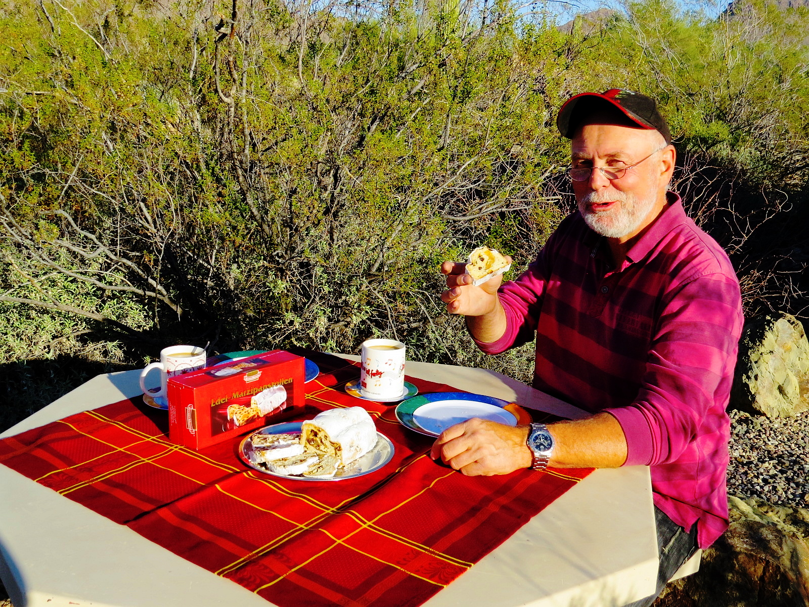 Im Süden Arizonas ist der mexicanischer Einfluß stark zu spüren. Landschaft, Häuser, Lebensstil und die Menschen … sehr mexicanisch. Tucson … erstmals seit Las Vegas gehen wir wieder einkaufen. Diesmal im Trader Joe …. das amerikanische Aldi. Die typisch deutsche Ausbeute waren Marzipanstollen und Pfeffernüsse …. Käse und Brot kamen der deutschen Auswahl auch etwas näher. Sogar Gerolsteiner-Wasser wird hierher gekarrt. Ob das sein muß? … zumal es insgesamt bei Trader-Joe nicht billiger war als somewhere else.